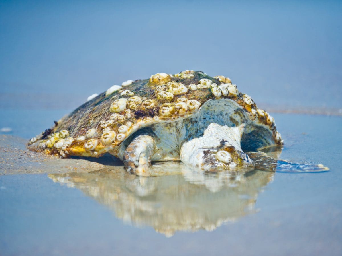 Of the seven species of sea turtles world-wide, three nest on Florida’s beaches. The predominant nester here is the loggerhead. Greens nest here in increasing numbers. Kemp’s ridleys, the smallest and rarest of the sea turtles, nest in Florida in very small numbers. Loggerheads and green sea turtles usually nest at night. In contrast, Kemp’s Ridleys nest during the day, particularly very windy days.