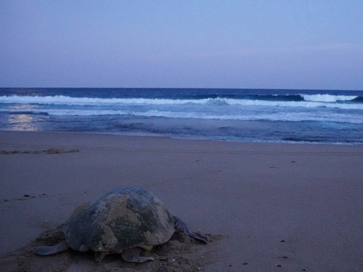 Early in the season, we look for wide, vehicle-like tracks in the sand left by female sea turtles that crawl onto the beaches in search of suitable nest locations. Later on we also look for tiny tracks left by little hatchlings.