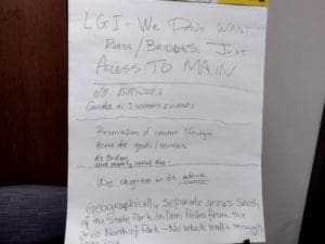 There was an audible response when she read that the possible project elements may include “Restroom Facility”. It was made clear that the current focus was accessibility and the services listed in the project elements may be addressed later.
