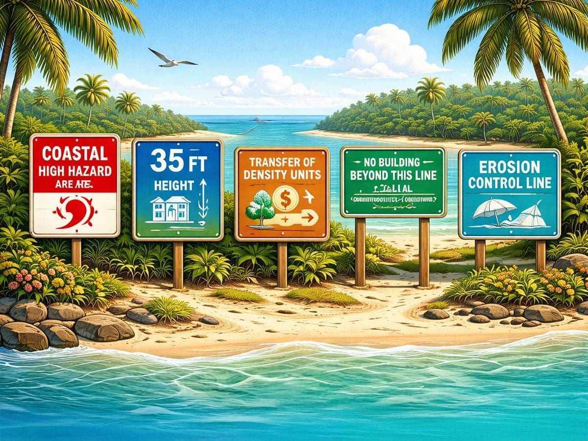 - Coastal High Hazard Area designation: The entire Island is classified as a Coastal High Hazard Area, limiting residential development density to ensure safety during hurricanes and promoting primarily single-family dwellings.