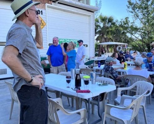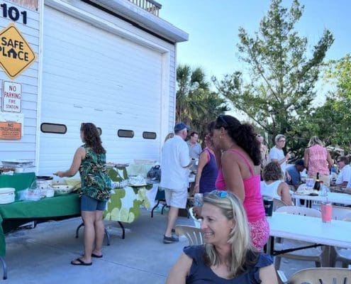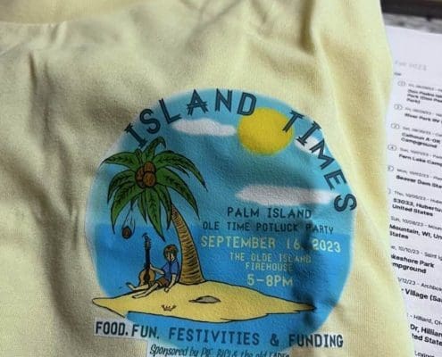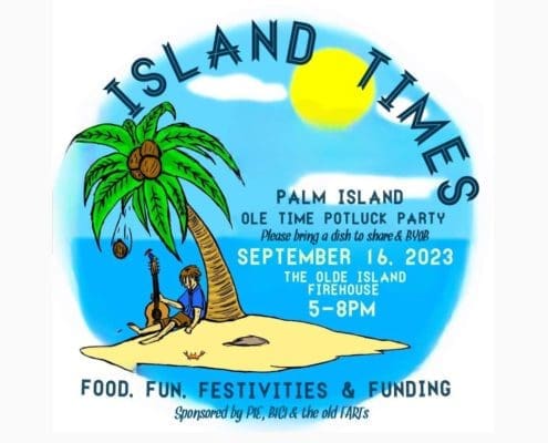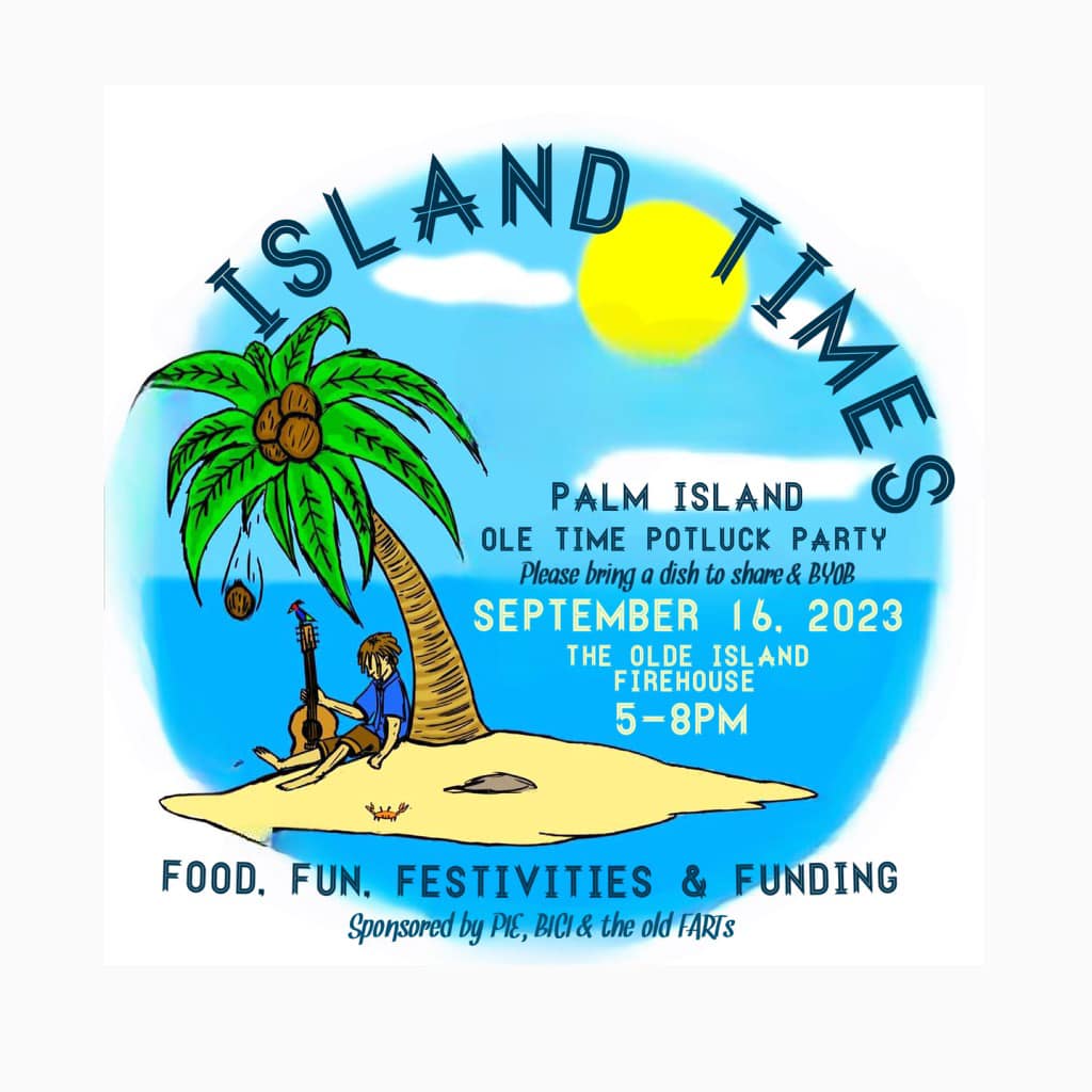 What a blast. On Saturday September 16th around 70 Islanders got together for an old-school Island style potluck party. Folks bought T-shirts and raffle tickets for a special Potluck logo tumbler. The Island Art Cart was on display so folks could add their personal artistic touch. Oldtimers and newcomers communed together, and a good time was had by all.